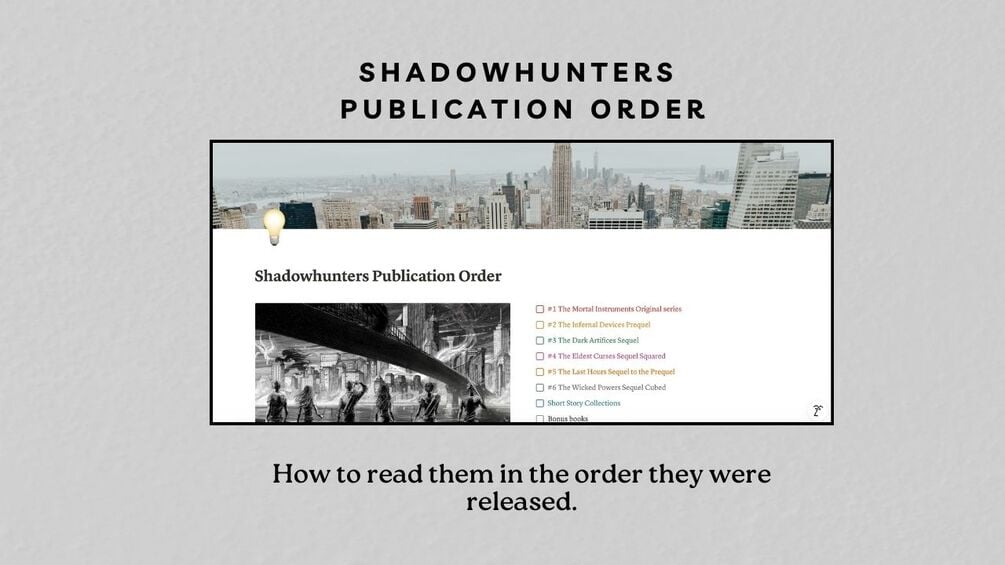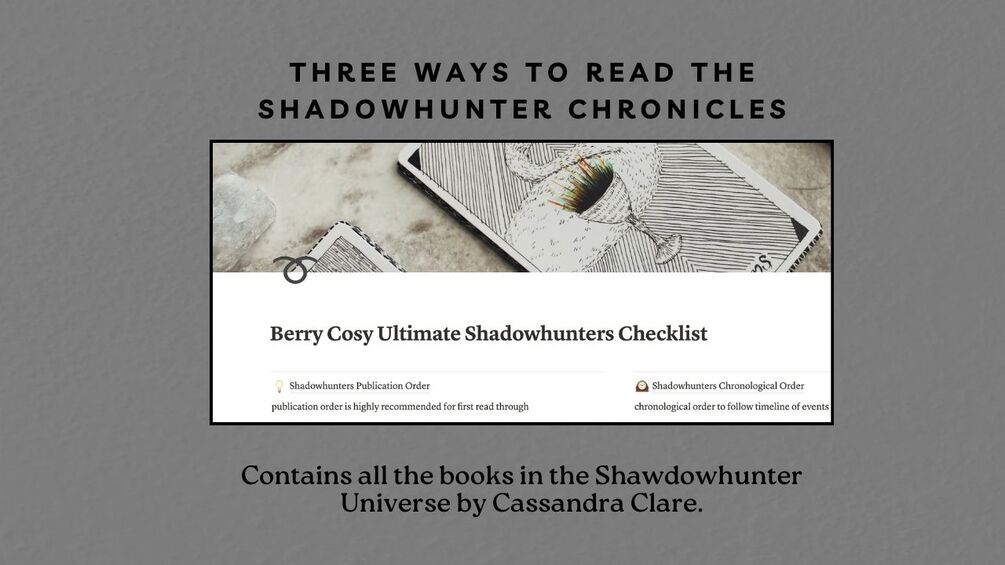 You'll get a functioning checklist of three different ways to read the Shadowhunter booksby Cassandra Clare!