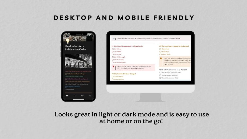 You'll get a functioning checklist of three different ways to read the Shadowhunter booksby Cassandra Clare!