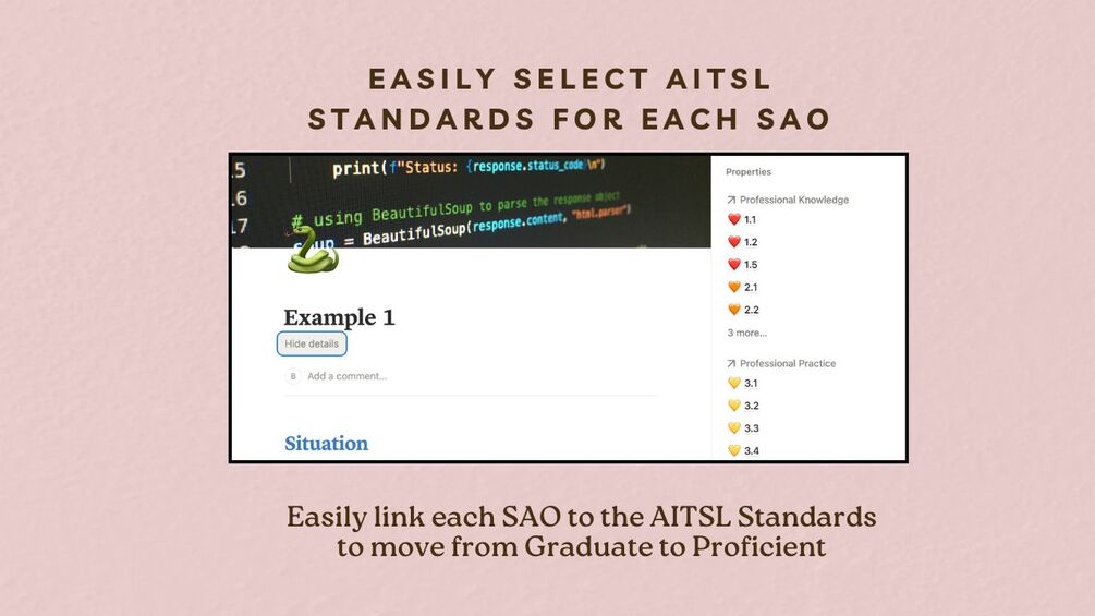 - Link to the AITSL standards with the click of a button